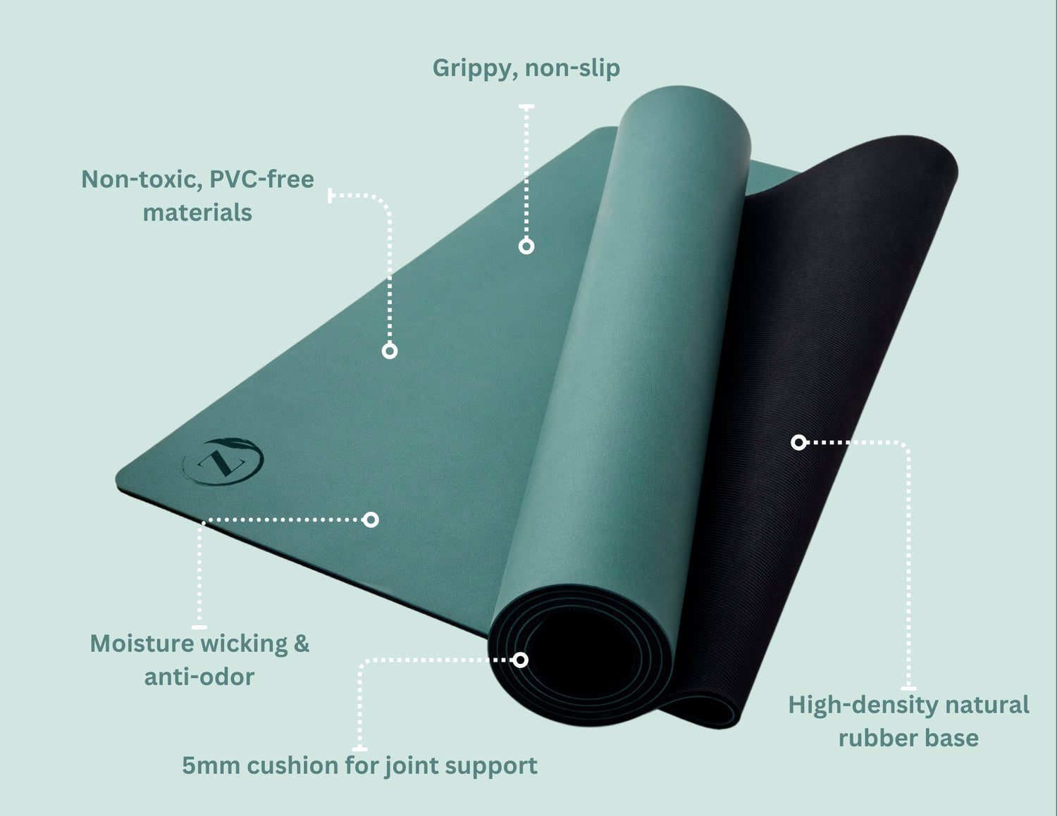 ▪ PU top layer absorbs sweat, drying within seconds to keep you grounded in high-sweat practices. Anti-odor and hygienic.
